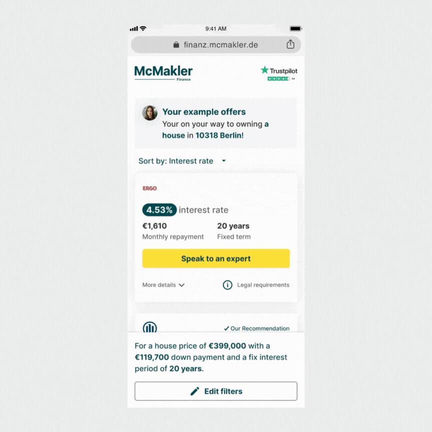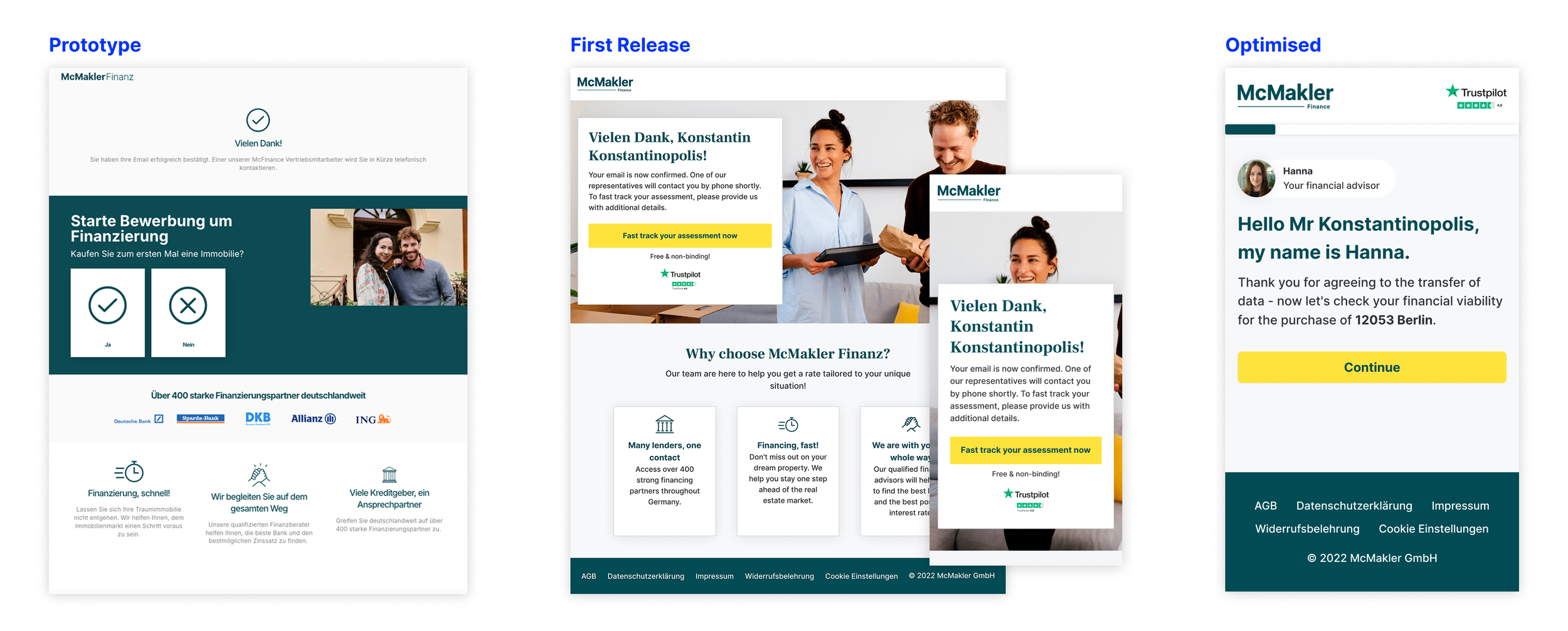 Improving the financing experience for first-time homebuyers by creating a user-centred digital experience that connects them with McMakler’s mortgage brokers.